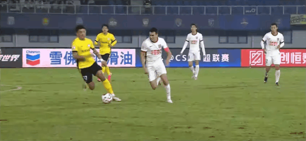 21’何龙海守卫时踢倒罗慕洛,主裁判对其进行口头警告