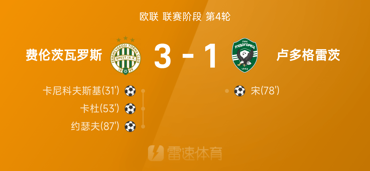 欧联战报:卡杜、约瑟夫破门,费伦茨瓦罗斯3-1卢多格雷茨