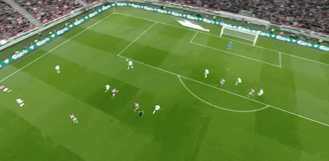27’铜墙铁壁!萨莱三秒区内凌空垫射攻门,凯莱赫完成挡射门