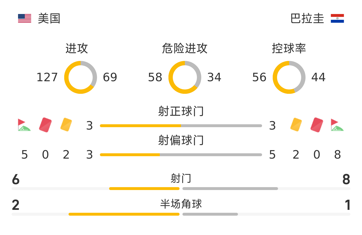 52’连续边线球!巴拉圭下半场开场攻势凶猛,但难获破门机会