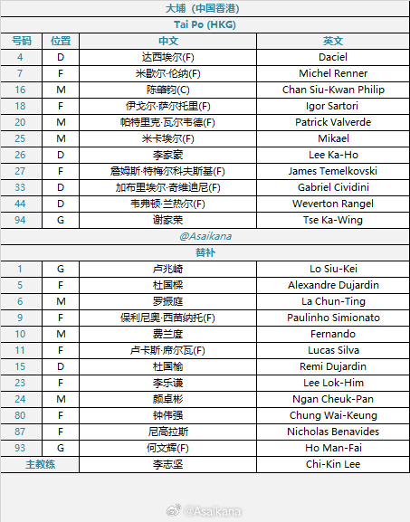 北京时间11月6日晚20:15,亚冠二级联赛事分组赛第四轮,北京国安主队场再次迎战港超球队大埔,赛前首发公布。
