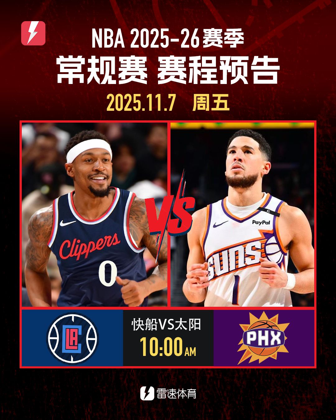 6686体育11月6日讯 明日NBA常规赛仅有快船对阵太阳一场竞赛。