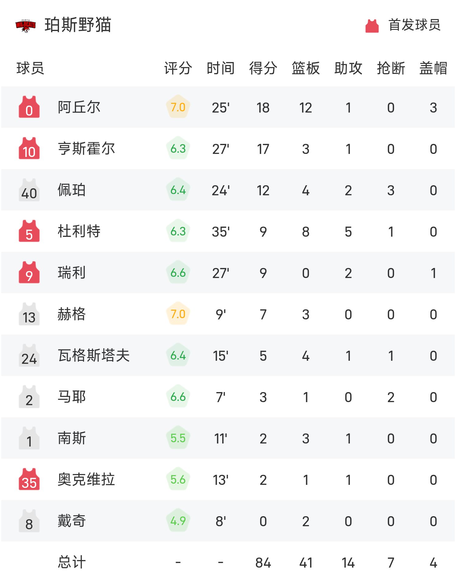 6686体育10月25日讯 25/26赛季NBL 常规赛,珀斯野猫对阵伊拉瓦拉老鹰。双方全场战罢,珀斯野猫84-85不敌伊拉瓦拉老鹰。哈维砍下全场最高的24分5板8助,率领伊拉瓦拉老鹰胜利取胜。