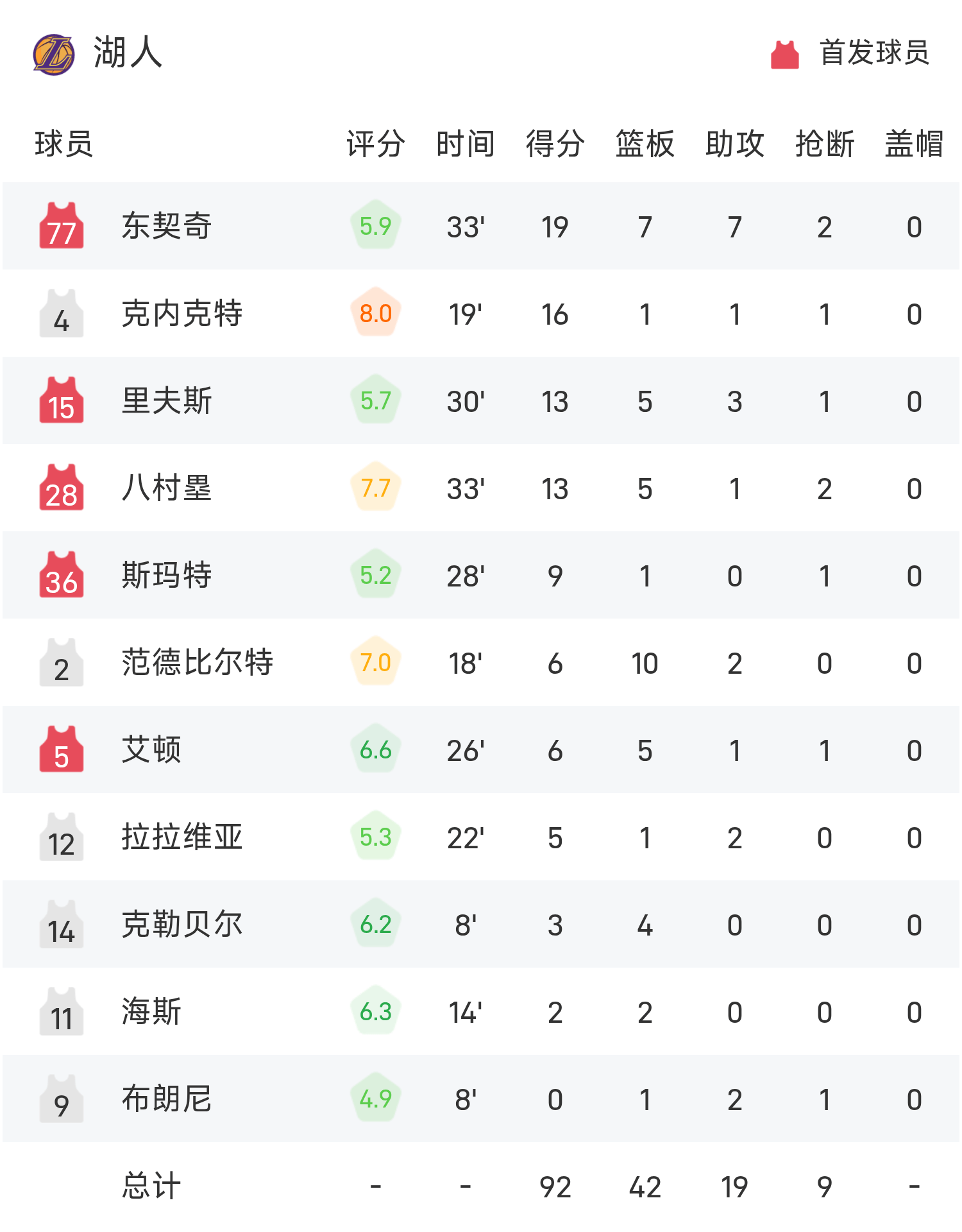 球员数据 查看更多